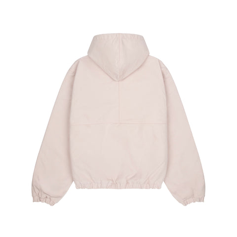 14oz pink washed denim / 100% cotton / embroidery on front and sleeve / with YKK zipper and fireman claps / quilted pattern lining and pocket inside / fits true to size