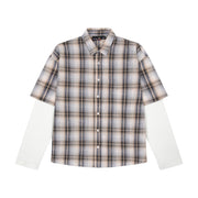 plaid poeline fabric / 100% cotton / waffle sleeves (100% cotton) / embroidery on back / custom buttons / curved hem / relaxed fit / fits true to size