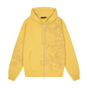 480gsm / 100% preshrunk cotton / embroidery on front, sleeve and hood / with double-slided YKK zipper / fits true to size