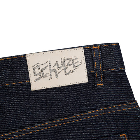 14oz raw denim / 100% cotton / embroidery on back / embroidered leather patch / wash inside out / balloon fit / fits true to size