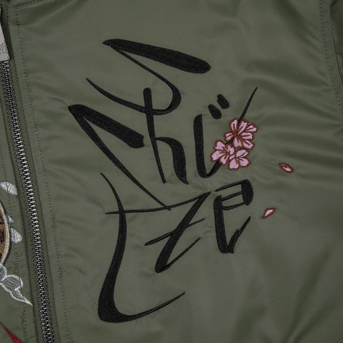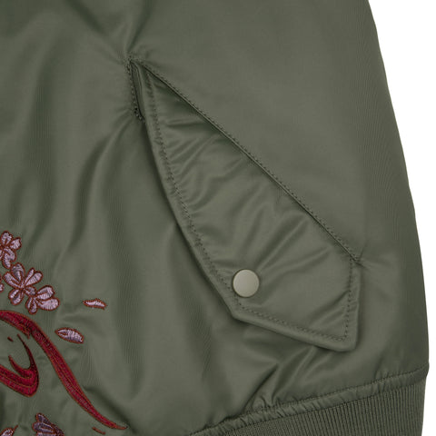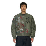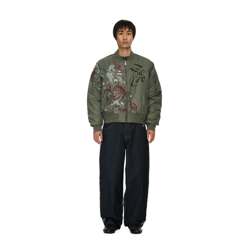 160gsm parachute fabric / 100% nylon / wind- and waterproof / capitone polyester lining / fiber filling / reversible / ribbed collar, hem and cuffs / embroidery on front and sleeve / with JKJ zipper / custom buttons / fits true to size