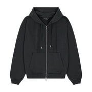 460gsm / 100% preshrunk cotton / ribbing on front / embroidery on back / with double-slided YKK zipper / with metal cord closures / fits true to size
