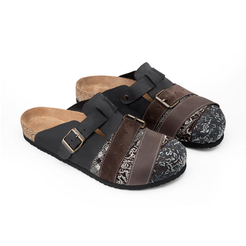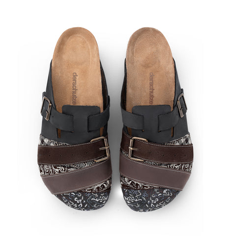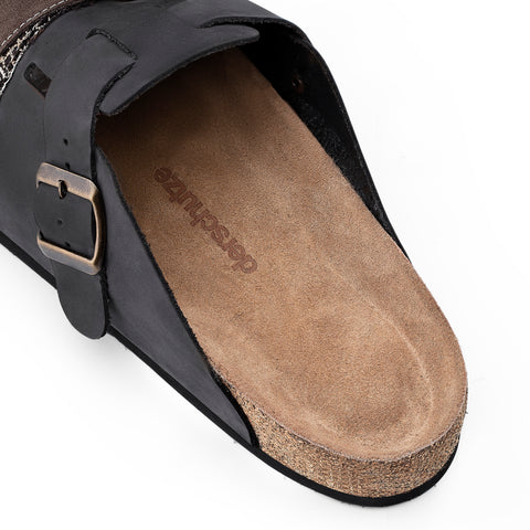 nubuck leather / suede leather belt details on front / cork footpad with eva outsole / extra sole padding / embroidered on front and belts / fits true to size / manufactured in Türkiye / all profits will be donated