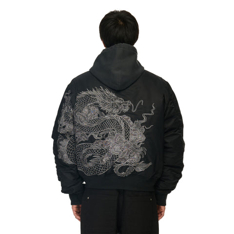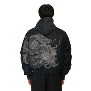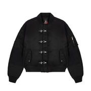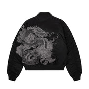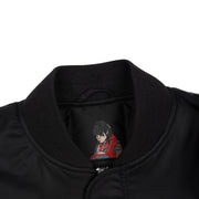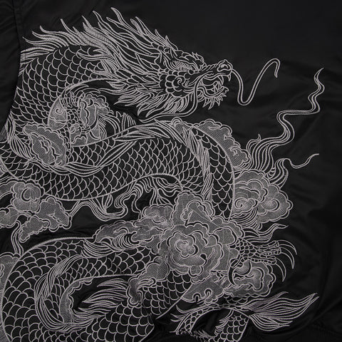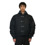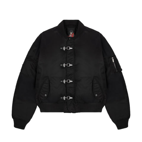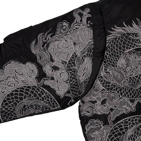 160gsm parachute fabric / 100% nylon / wind- and waterproof / polyester lining / fiber filling / ribbed collar, hem and cuffs / embroidery on back / with JKJ zipper and fireman claps / fits true to size