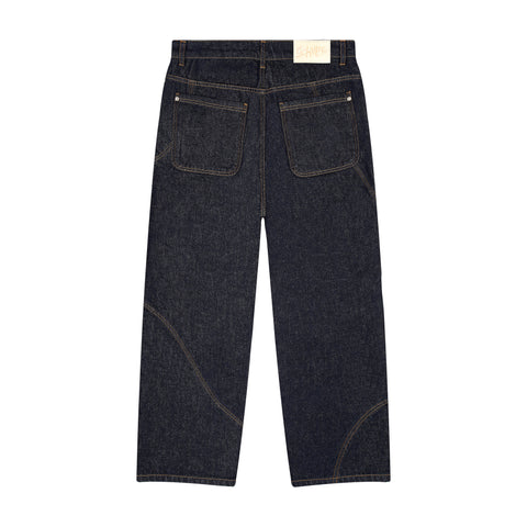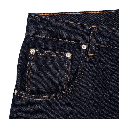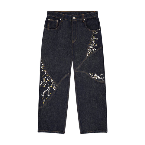 14,5oz raw denim / 100% cotton / made of different pieces / embroideries on front / embroidered leather patch / fabric may bleed or fade, wash inside out in cold water to preserve color and character / fits true to size