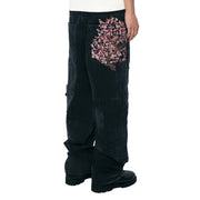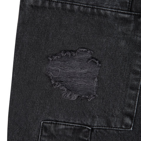 14,5oz denim / 100% cotton / 20+ hand sewn patches all over / embroidery on front pocket and back / embroidered leather patch / washed effect / distressed patches / wash inside out / fits true to size