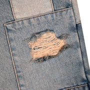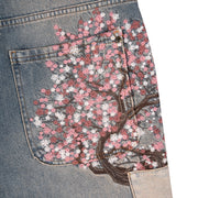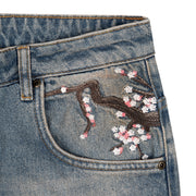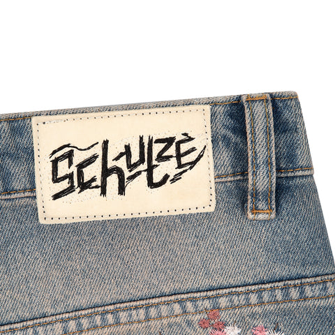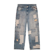 14,5oz denim / 100% cotton / 20+ hand sewn patches all over / embroidery on front pocket and back / embroidered leather patch / washed effect / distressed patches / wash inside out / fits true to size