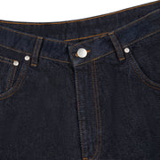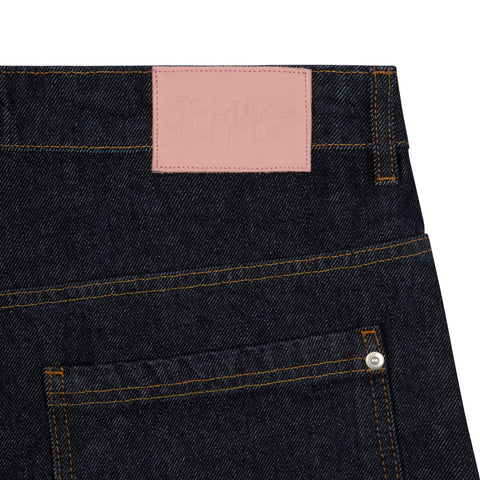 14,5oz denim / 100% cotton / embroidery on front and back / debossed printed leather patch / wash inside out / straight fit / fits true to size