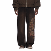 14,5oz denim / 100% cotton / embroidery on front and back / wash inside out / bootcut fit / fits true to size
