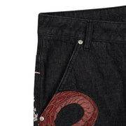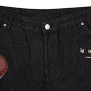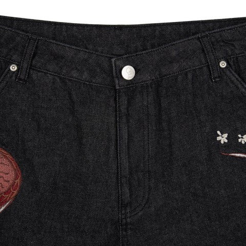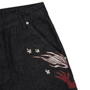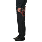 14,5oz raw denim / 100% cotton / embroidery on front and back / embroidered leather patch / wash inside out / straight fit / fits true to size