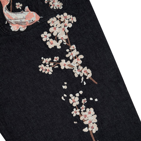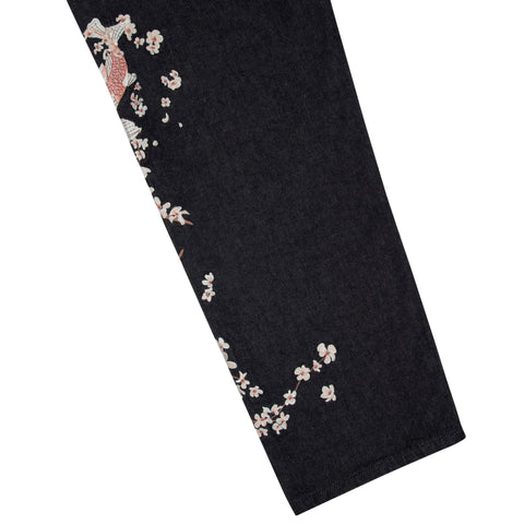 14,5oz denim / 100% cotton / embroidery on front and back / wash inside out / straight fit / fits true to size