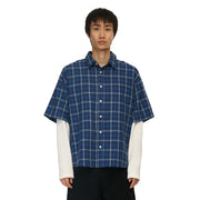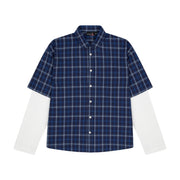 plaid popeline fabric / 100% cotton / waffle sleeves (100% cotton) / embroidery on back / custom buttons / curved hem / relaxed fit / fits true to size