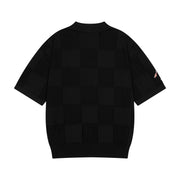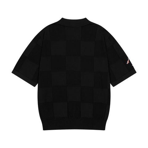 100% cotton / checkered knit pattern / embroidery on front and sleeve / custom buttons / fits true to size
