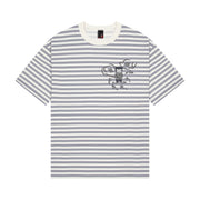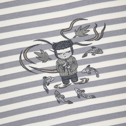 280gsm fabric / 100% preshrunk cotton / grey striped printed fabric / embroidery on front / fits true to size