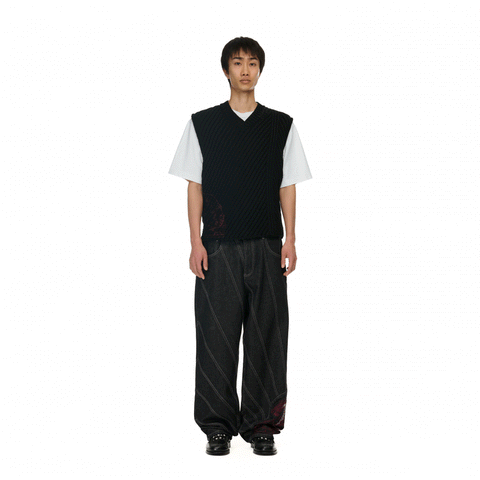 diagonal ribbed knit / 100% cotton / embroidery on front and back / hand-stitch detail on collar / fits true to size