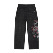 14,5oz raw denim / 100% cotton / diagonal-cut / embroidery on front and back / wash inside out / straight fit / fits true to size