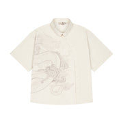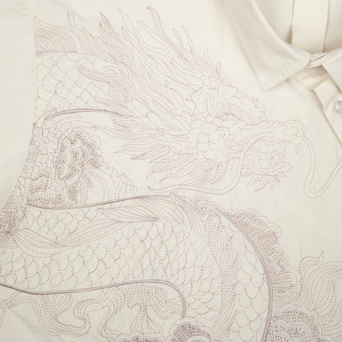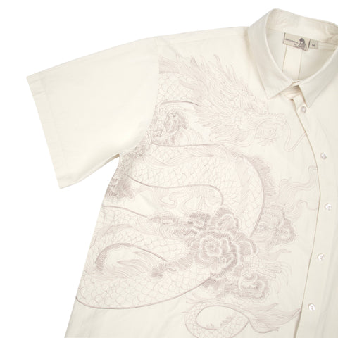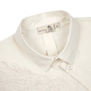 popline fabric / 100% cotton / embroidery on front / asymmetrical fly with custom buttons / box pleat on back / regular fit / fits true to size